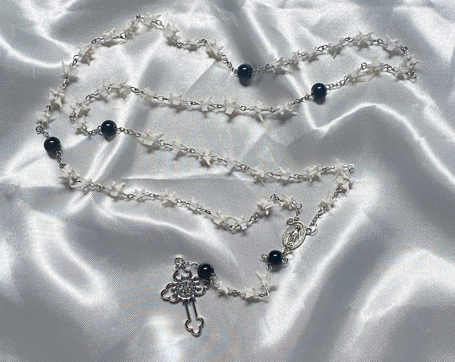 Product images serve as conceptual references. Due to the organic nature of the materials and the process, each rosary will exhibit unique variations in bone size, shape, and coloration.
