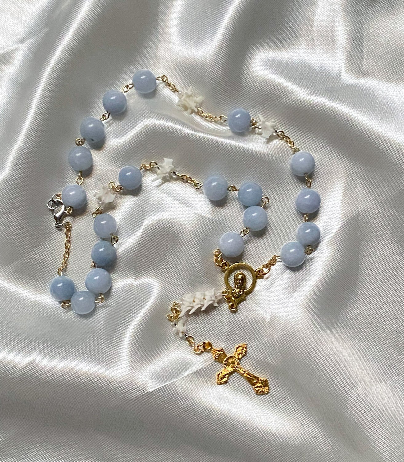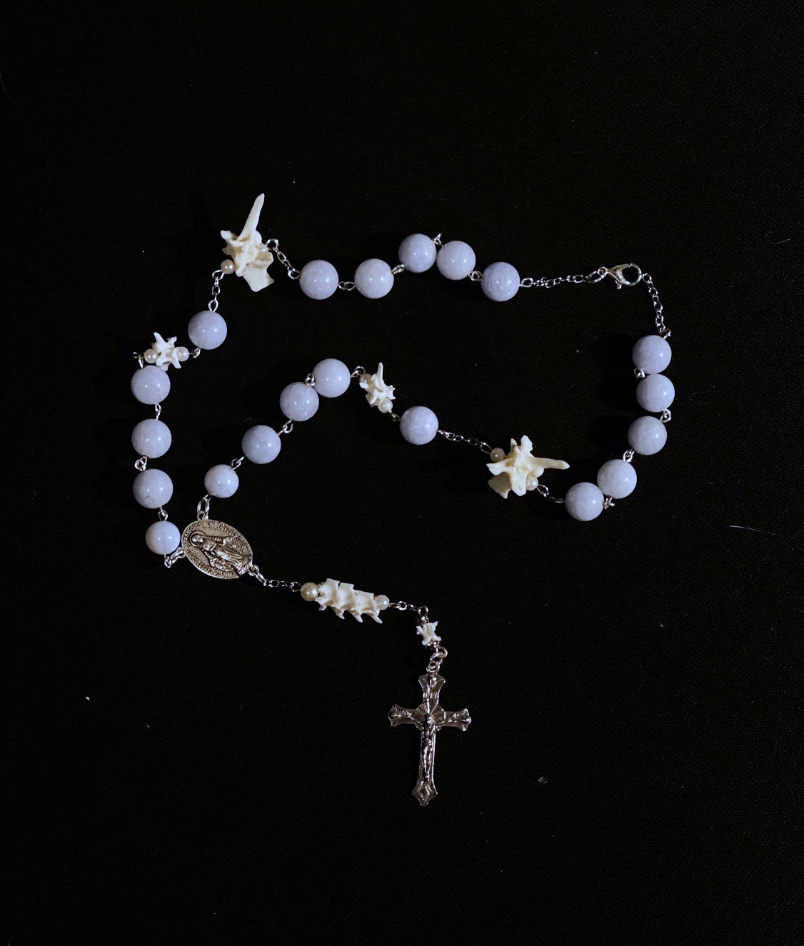 Product images serve as conceptual references. Due to the organic nature of the materials and the process, each rosary will exhibit unique variations in bone size, shape, and coloration.